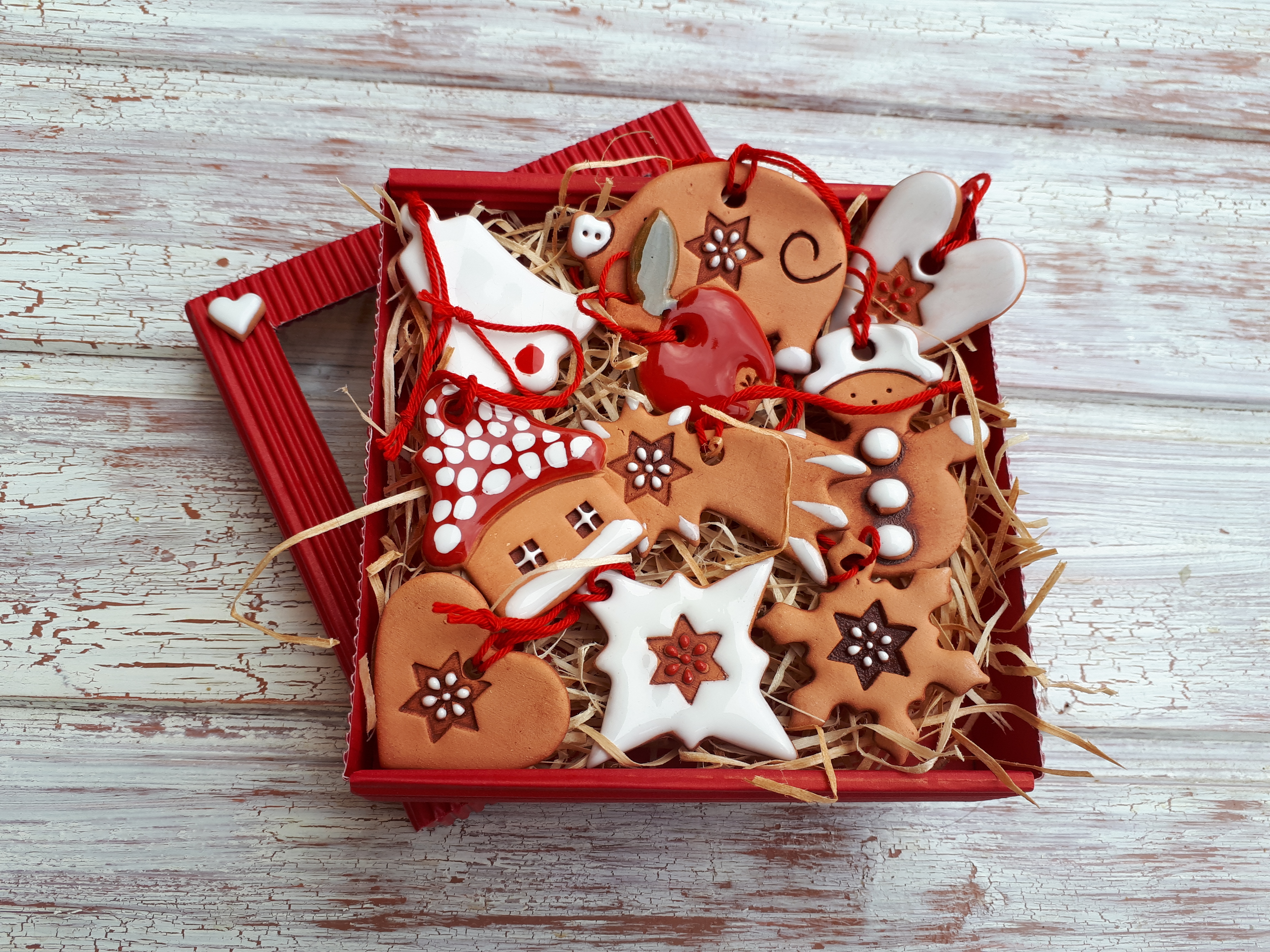 Keramické, vánoční ozdobičky v přírodním stylu.