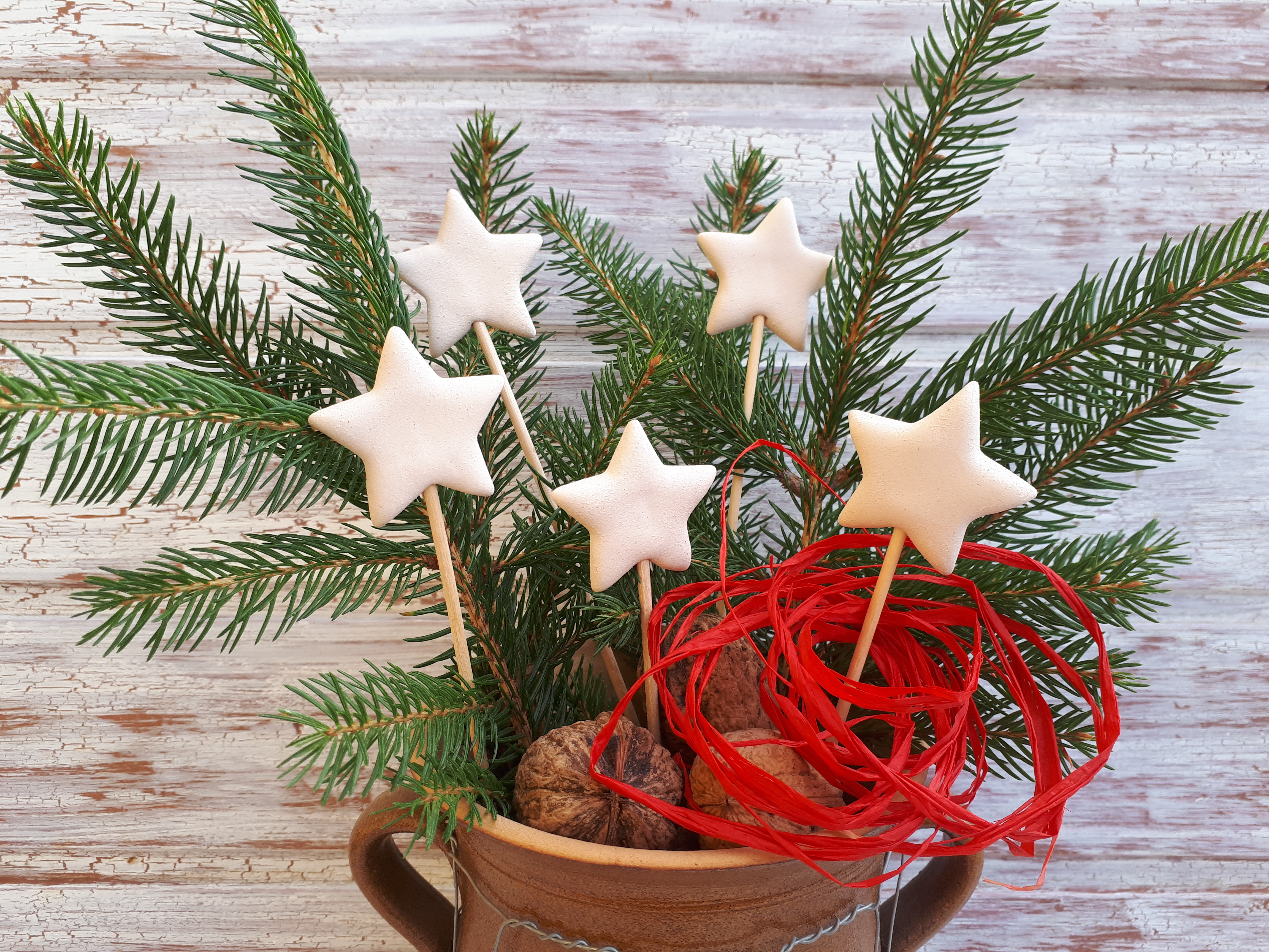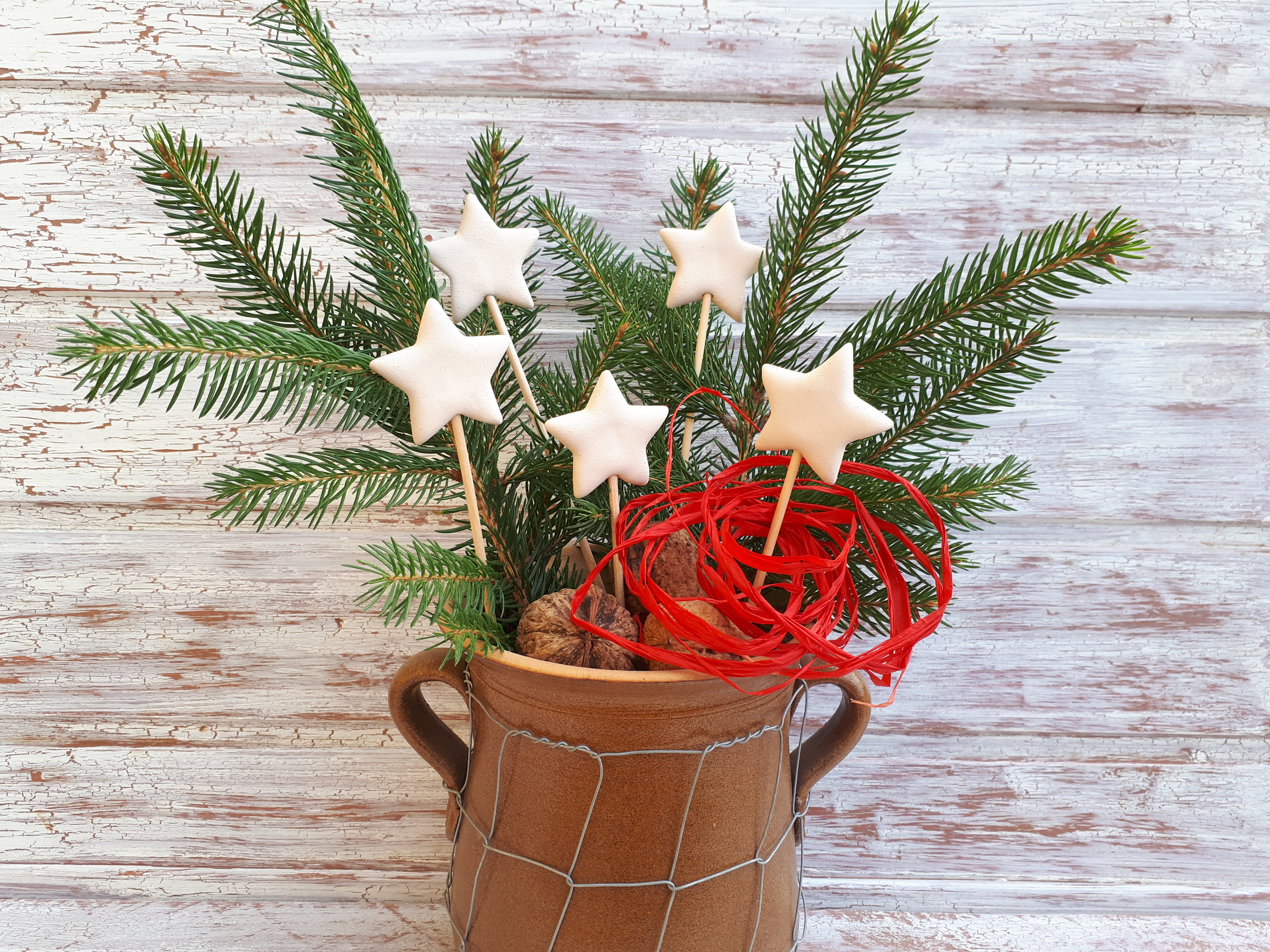 Vánoční zápich hvězdičky bílé,hladké, přírodní.