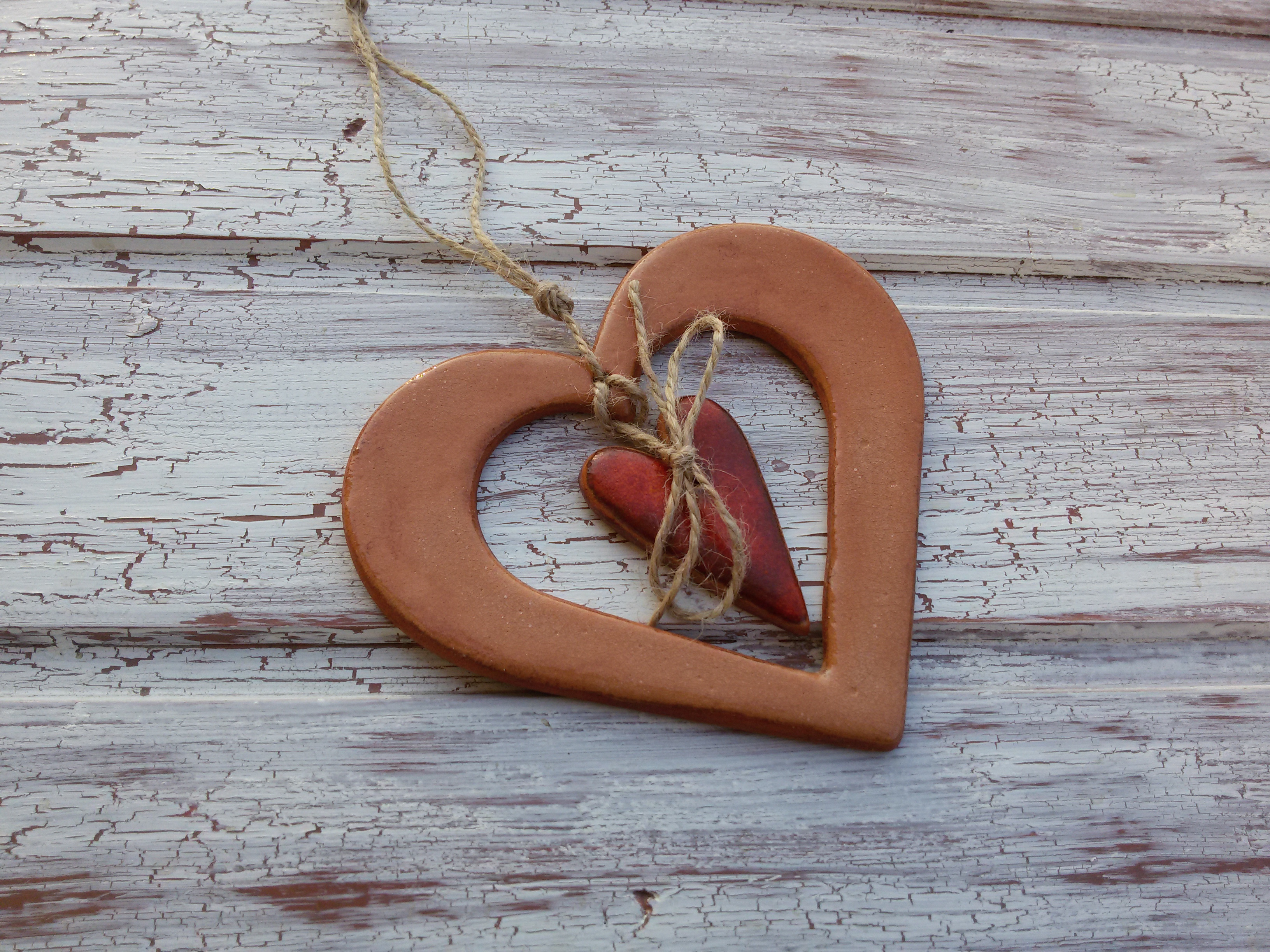 Keramická, celo glazovaná, srdíčková dekorace.