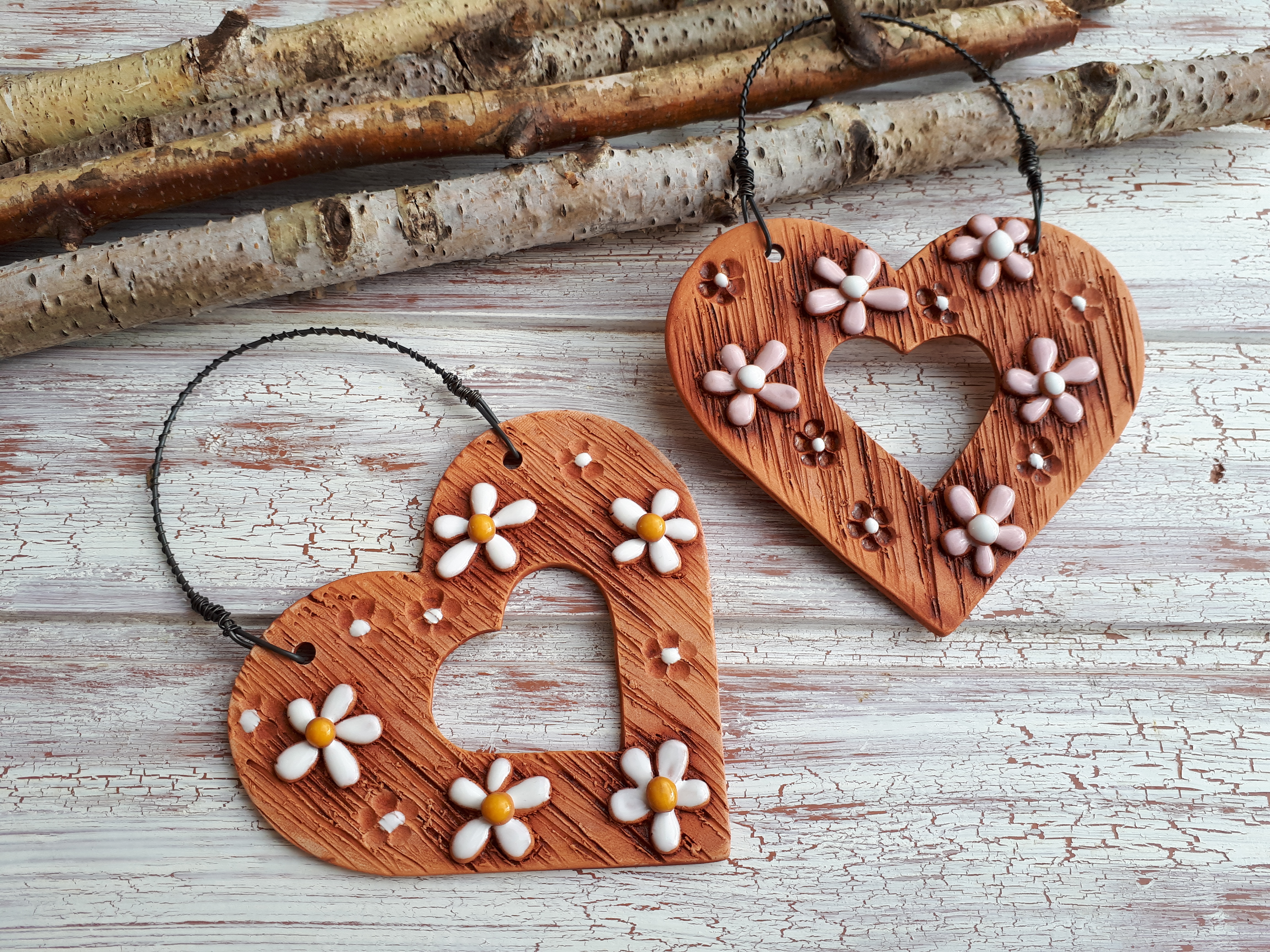 Keramické srdíčko s drátěným uchem v přírodním stylu s patinou zdobené glazurou.
