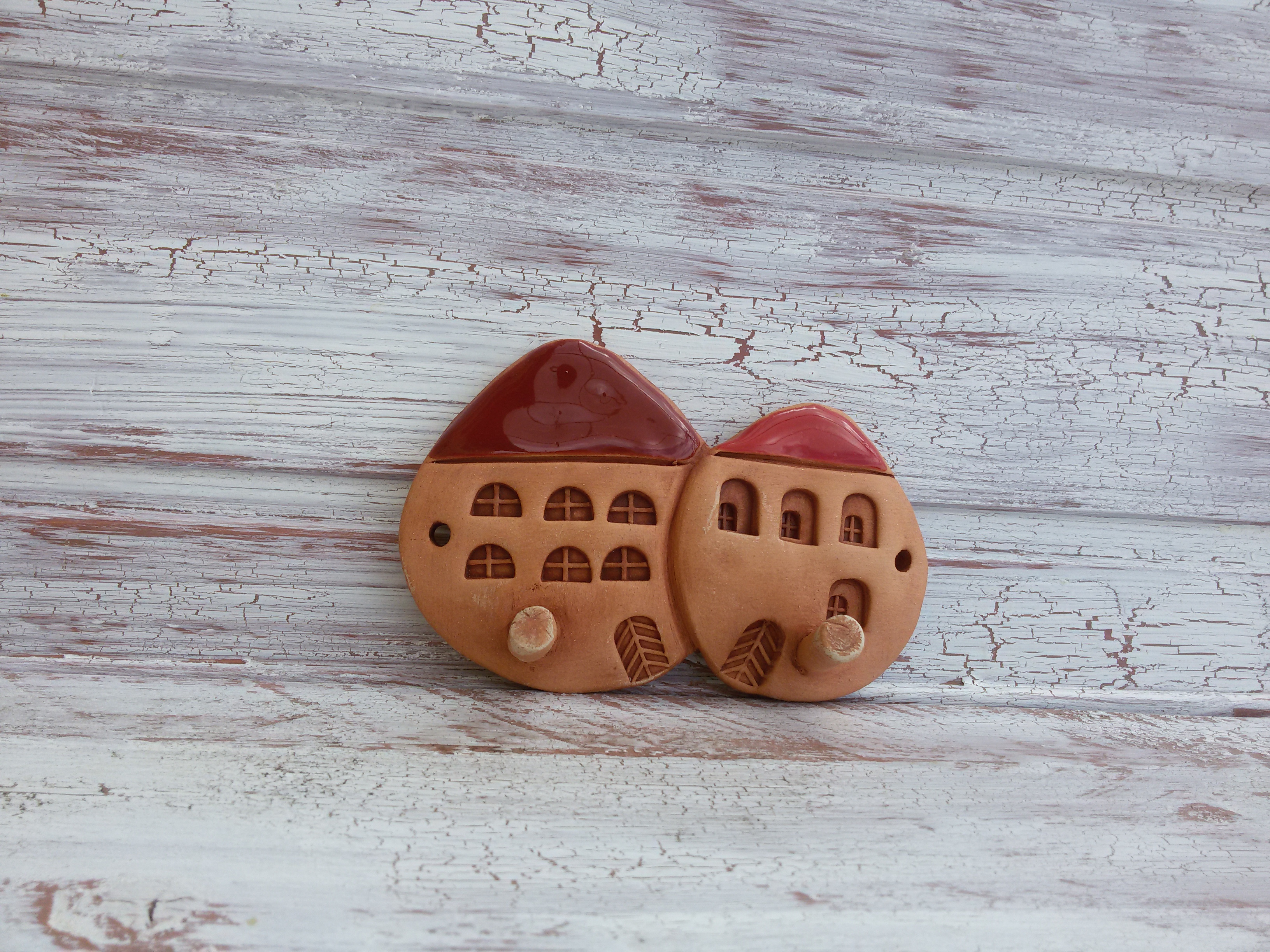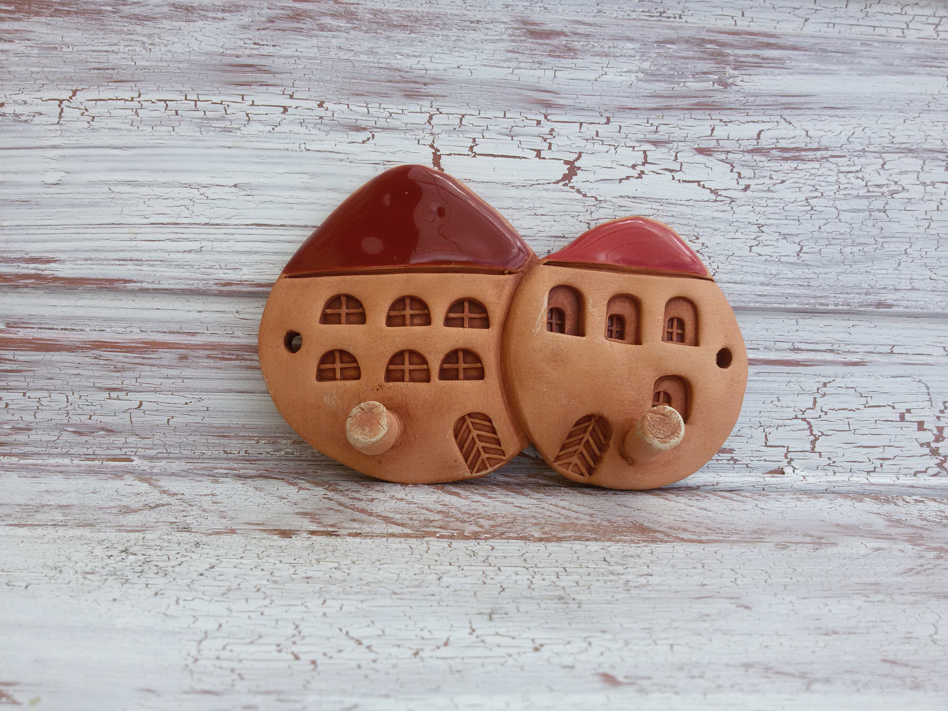 Keramický, domečkový věšák.