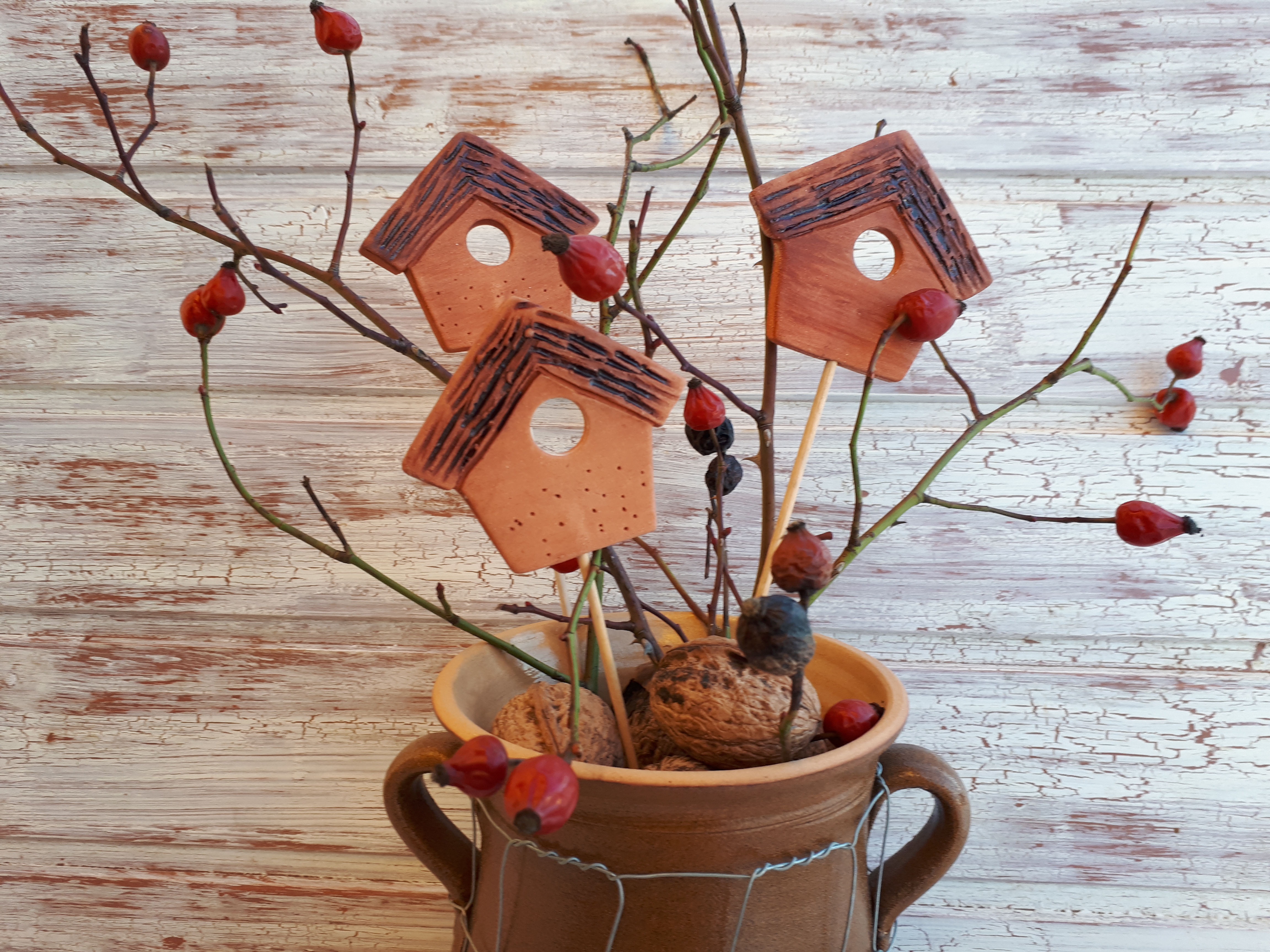 Keramická jarní dekorace v přírodním stylu s patinou.